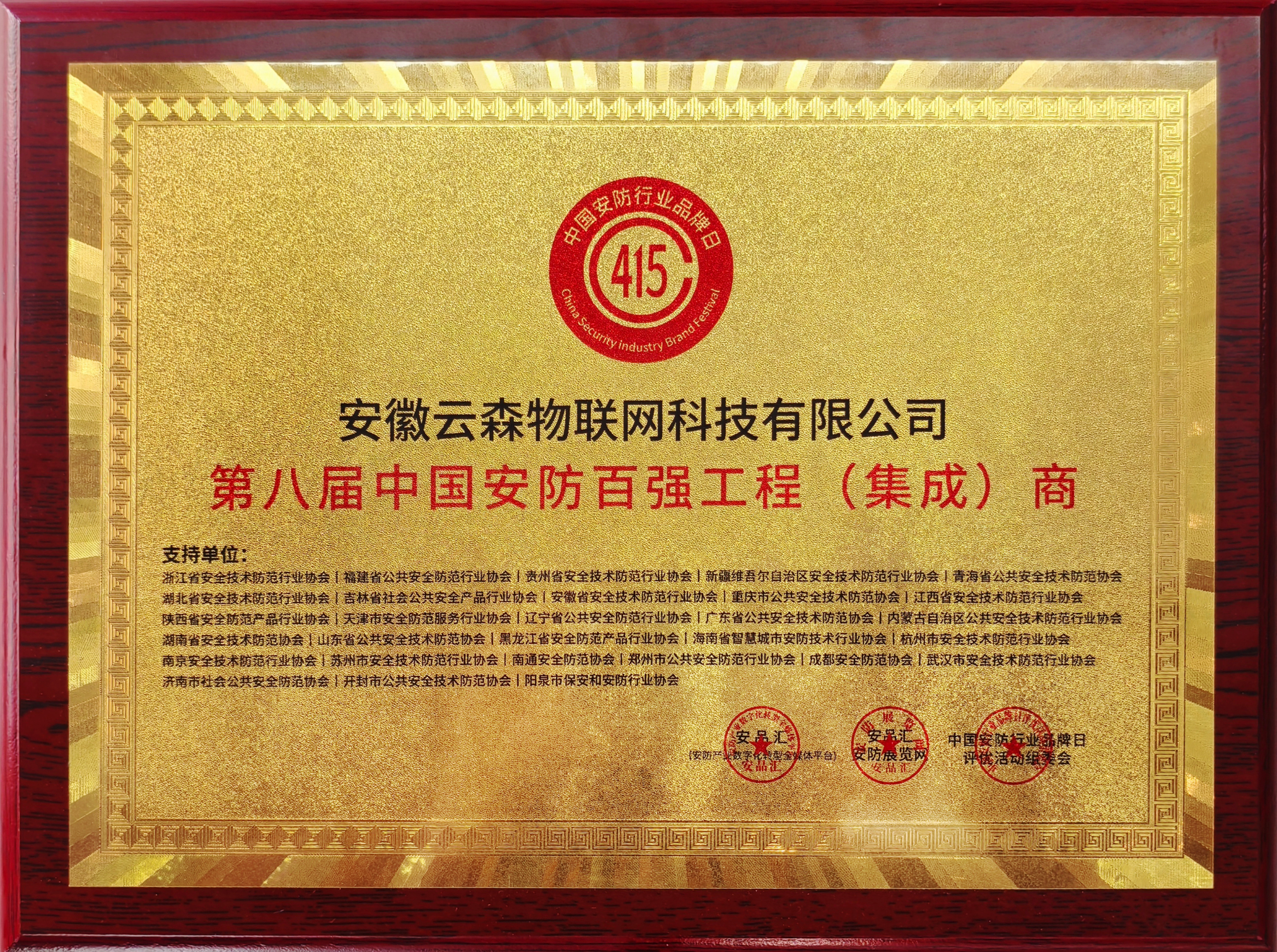 恭喜!安徽云森物聯(lián)網(wǎng)科技有限公司在安防領(lǐng)域再傳捷報,一舉斬獲“第八屆中國安...